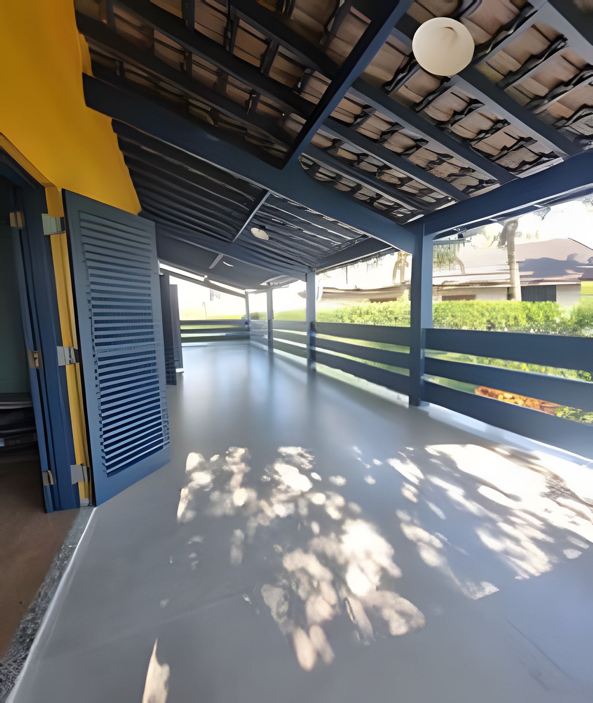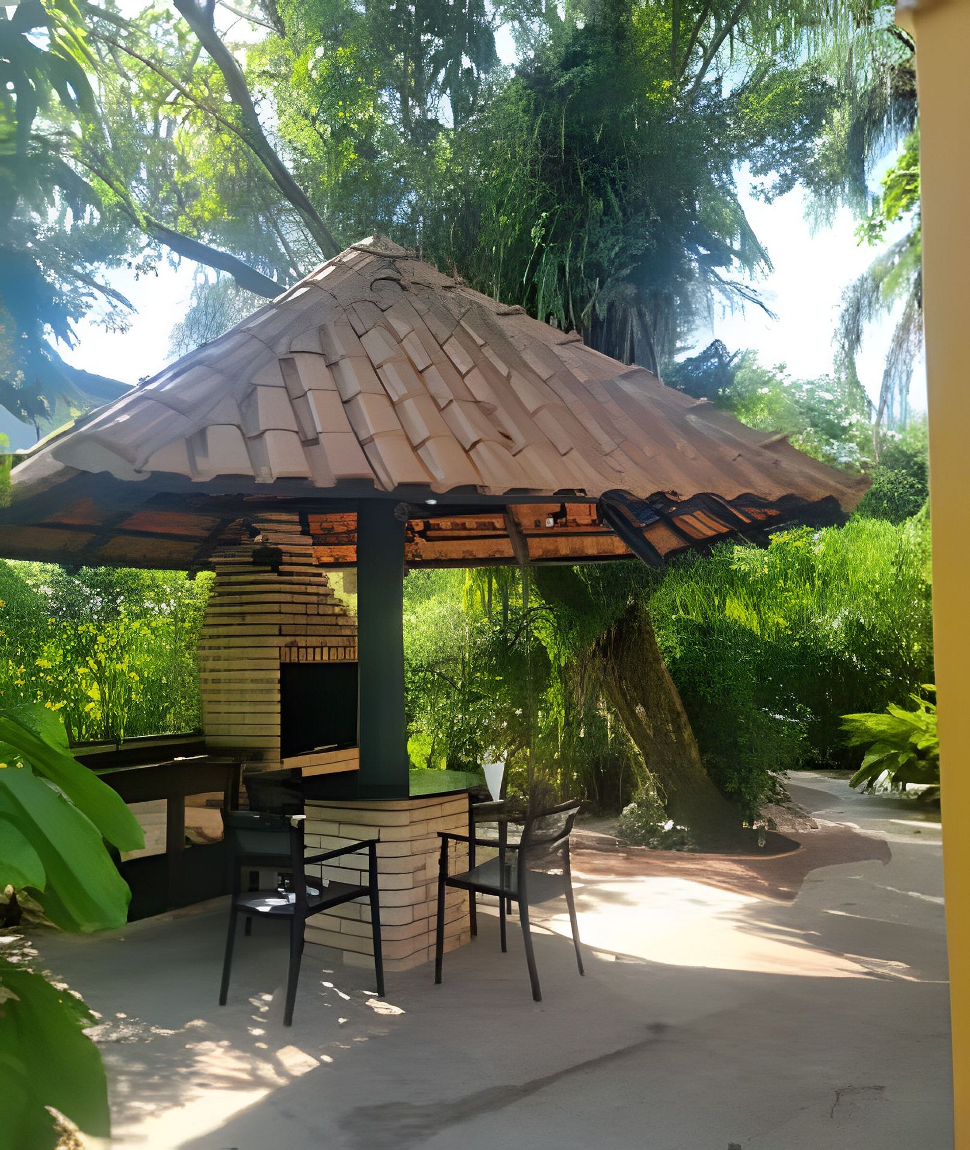 Highlighting the leisure area, with a large balcony and a barbecue in the form of a kiosk.