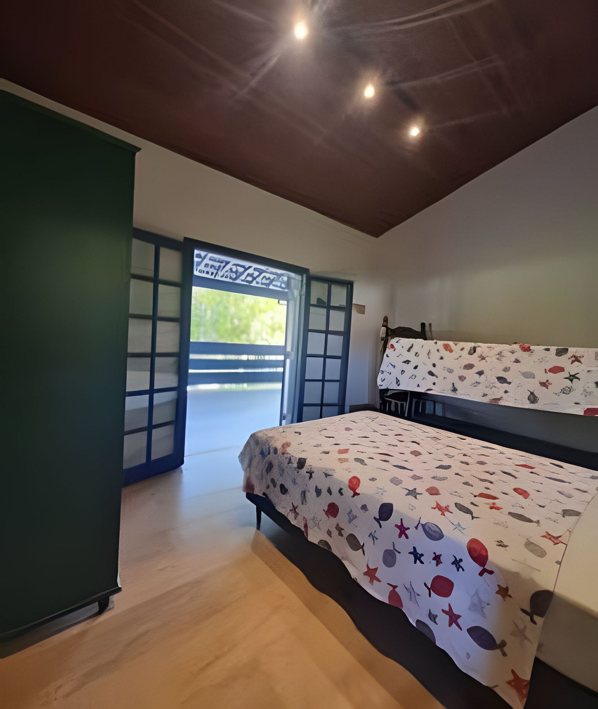 On the ground floor: 1 bedroom with a double bed and another bunk bed.