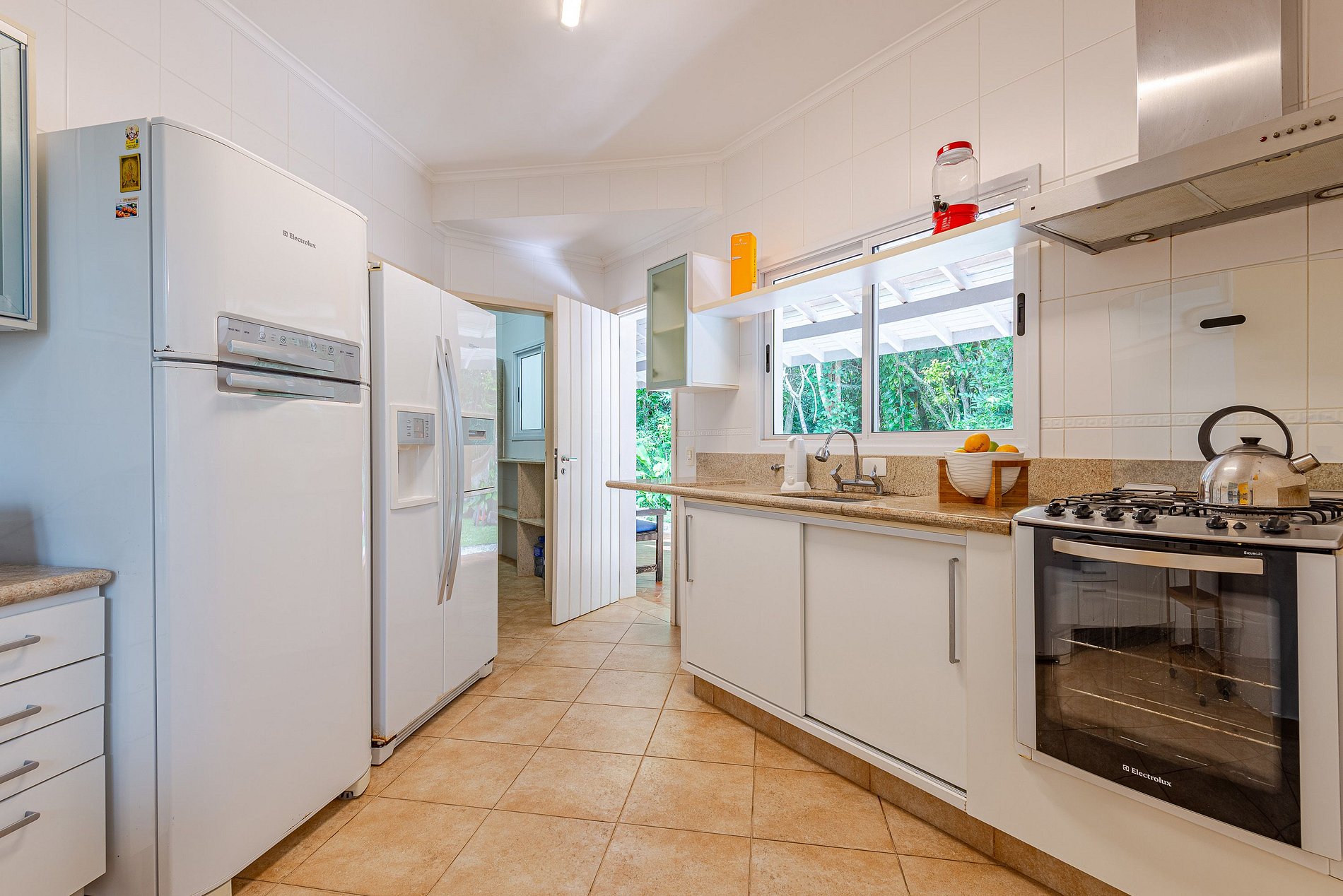 Cozinha equipada, 2 geladeiras, freezer, máquina de lavar, utensílios, redes e caiaques.