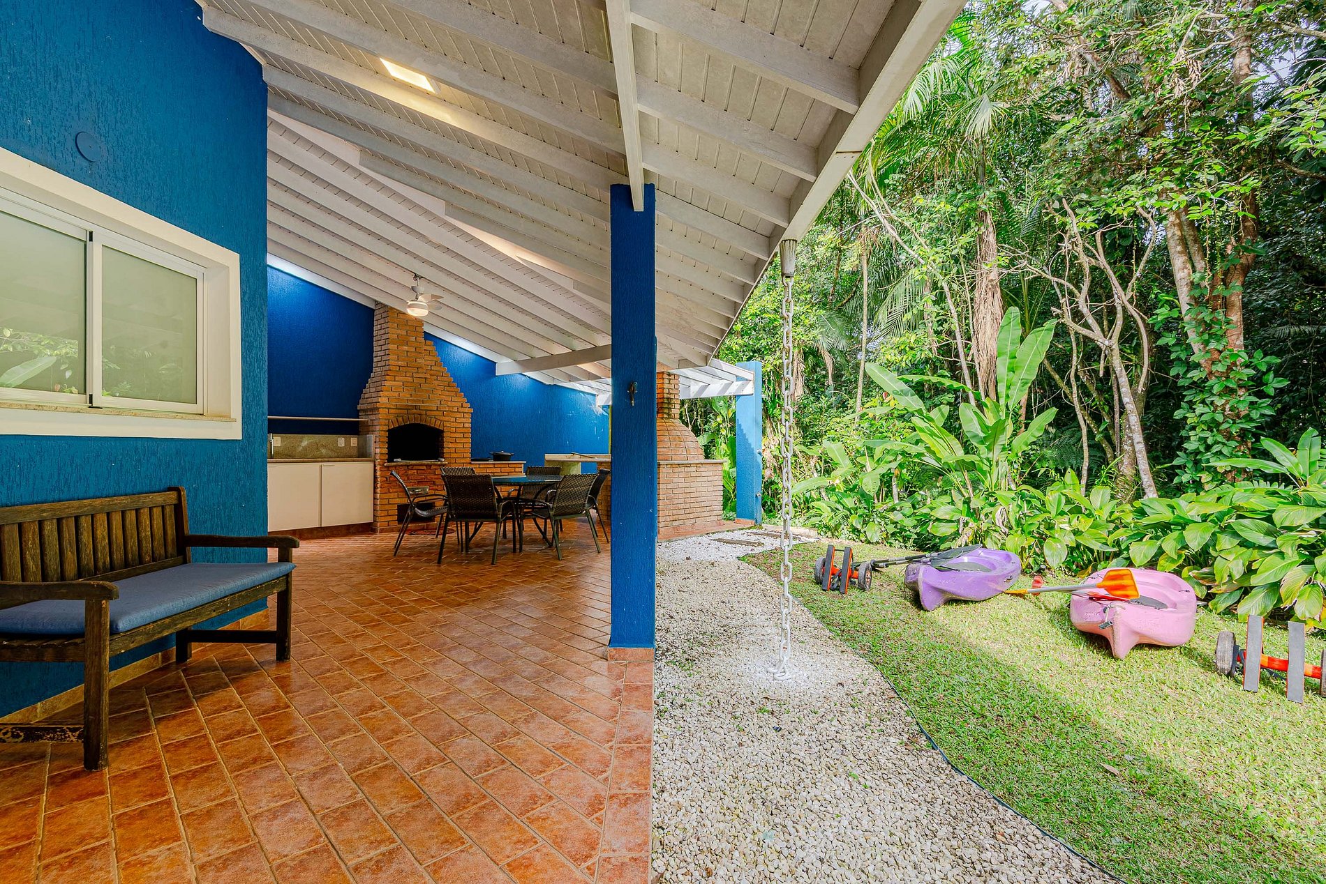 Com um paisagismo encantador, área externa perfeita para reunir a família, e infraestrutura completa (piscina, Jacuzzi, lareira, forno de pizza, caiaques, redes e muito mais), o espaço convida a momentos únicos e memoráveis. O contato com o verde, o canto dos pássaros e a proximidade com os rios tornam a estadia ainda mais especial.
